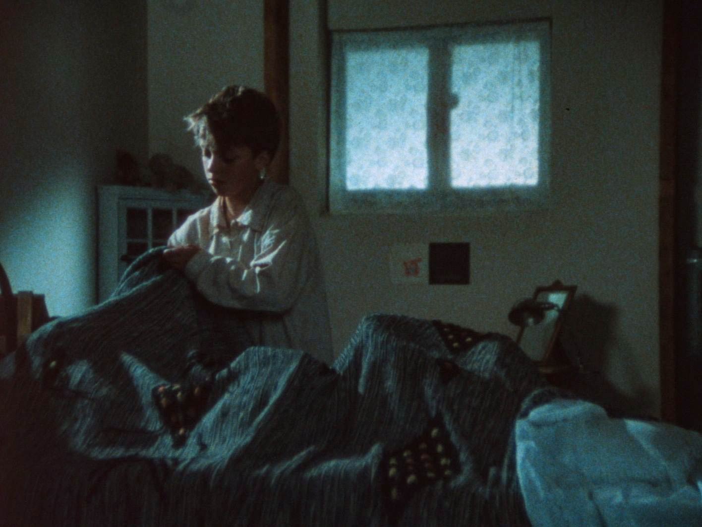 Ansuya Blom’s Amazing Grace offers a compelling exploration of girlhood through a narration about a young girl whom we observe as she plays with her toys and asks large existential questions (Fig. 3). The video’s opening line, “The bed is an untouched island, we all live in it, uninvited,” immediately establishes the bed as a central metaphor for experiences of female adolescence. Angela McRobbie and Jenny Garber already implicated the bedroom as a symbolic space for expressions of girlhood in their piece Girls and Subcultures from 1976.[1]