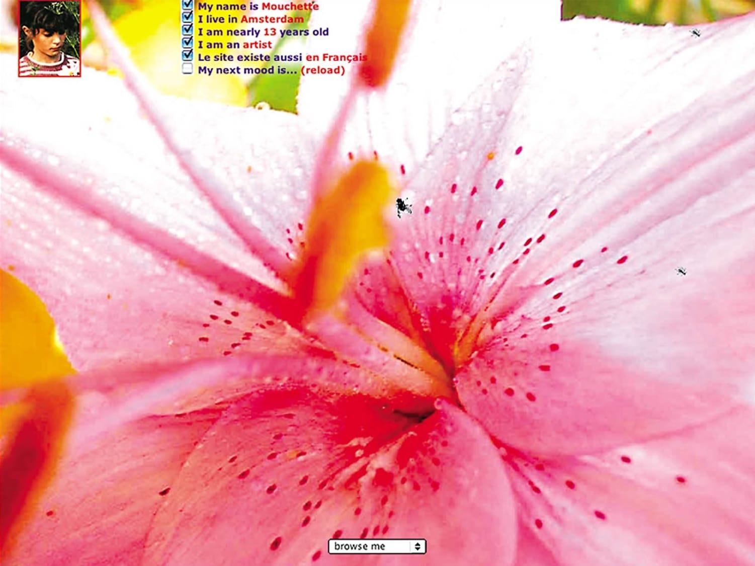 Figure 4. Martine Neddam, Mouchette.org: Version 1.0, 1996, interactive website. Collective purchase of the Stedelijk Museum Amsterdam and MOTI. The purchase on the part of the Stedelijk Museum is generously supported by the Tijl Aankoop Fonds and a private donor, 2016.