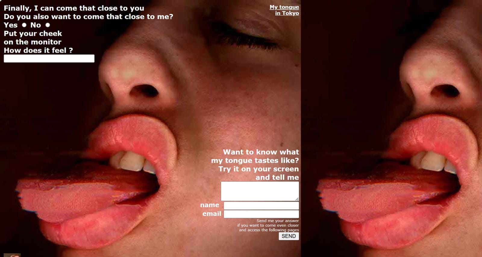 Mouchette embodies one such girl, using the internet to express herself emotionally and creatively. Her corpus is composed of language, code, image, and sound. The website’s pink hues strike a familiar chord (Fig. 4), but as one delves deeper into Mouchette’s various subsites, the tones darken considerably. An image of her tongue appears, inviting viewers to imagine its taste (Fig. 5). Elsewhere, a portrait of her father composed of raw meat can be found. The imagery is rife with sexual undertones and blurs into motifs of death and trauma—subjects often deemed too taboo for discussion by young girls. But Neddam is interested in precisely those dark moments associated with the thirteen-year-old girl’s experiences.