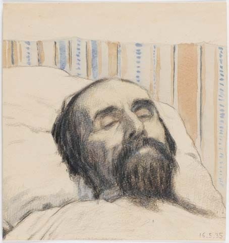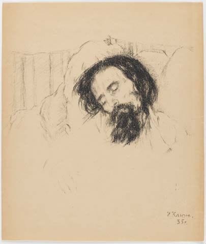 Ivan Vasilevich Klyun, Kazimir Malevich a Few Days Before his Death, 1935, chalk lithography, 26.7 × 22.5 cm. On loan from the Khardzhiev-Chaga Cultural Centre Foundation. © Foundation Khardzhiev / Stedelijk Museum Amsterdam.