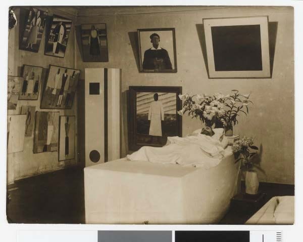To fully understand how Malevich saw his own death, as a historical figure and an artist, let’s retrace his final days and recollections of his close friends and colleagues. “Rites occupied a rather large place in Malevich’s life, despite the fact that he did not talk about them until he was near the end of his life,” writes Ksenia Buksha. Over the course of the decades preceding this, his vision of a “good death” had been shaped by personal experience of loss and grief and informed by philosophers such as Nikolai Fedorov and figures like Helena Blavatsky and Daniil Kharms.